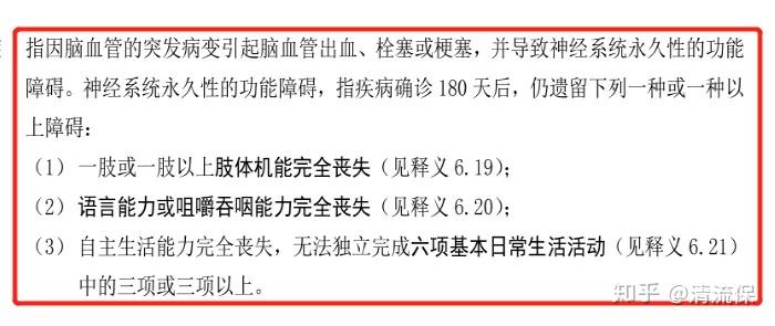而重疾险中的脑中风后遗症的理赔标准是确诊180天后,造成的后遗症,也就是说首选你要先度过鬼门关,然后你要活过180天……