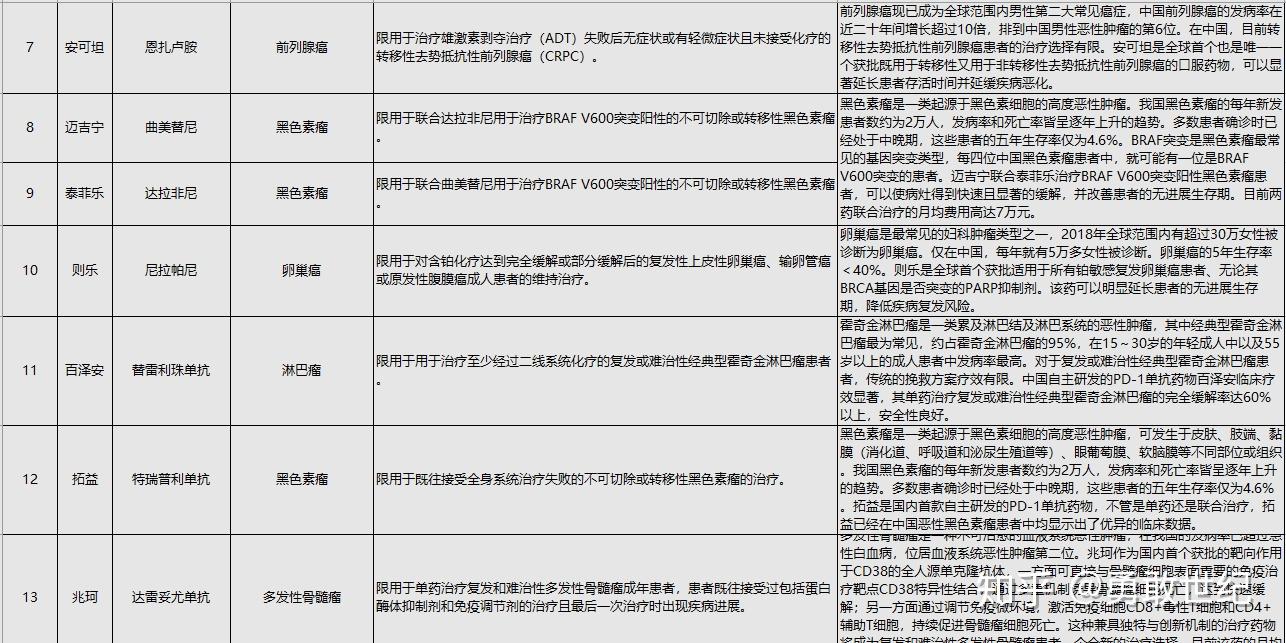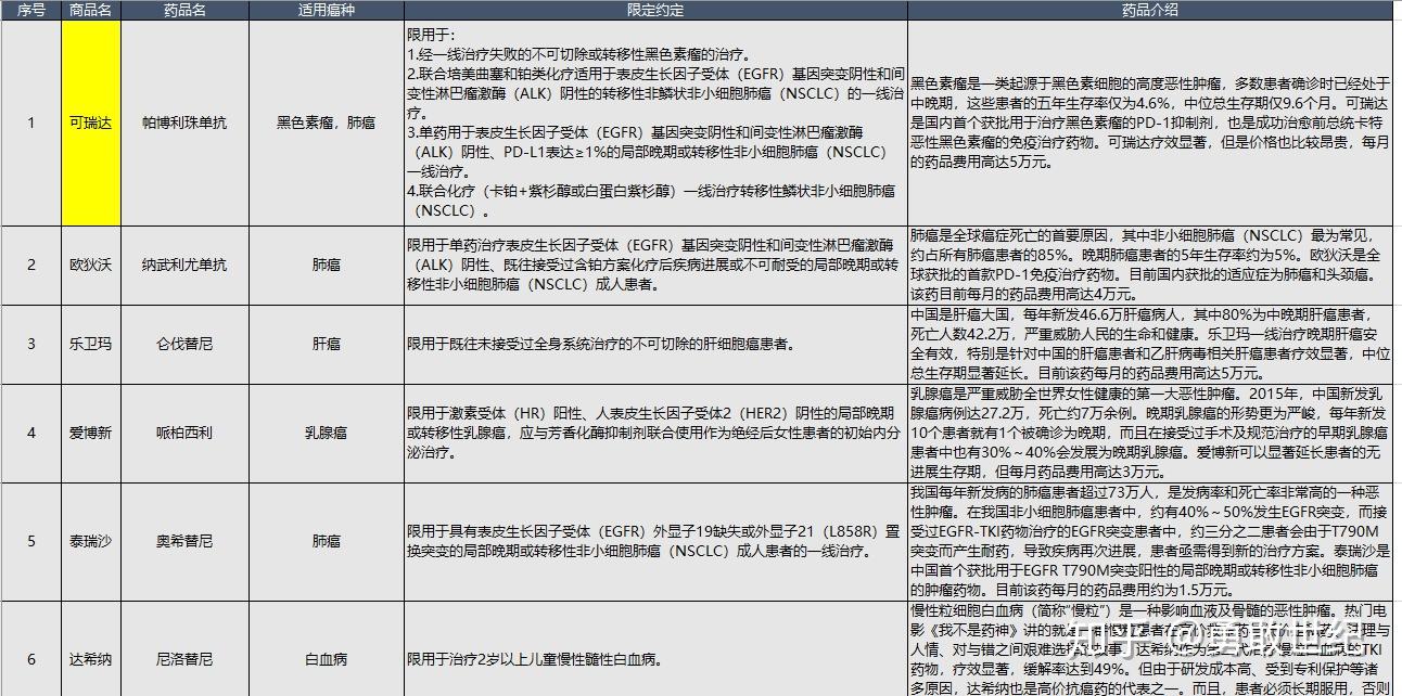 肿瘤大牛特效药都报销,超级硬核,覆盖9种高发癌症,肺癌、乳腺癌、卵巢癌、前列腺癌、白血病、淋巴瘤、多发性骨髓瘤等等,覆盖70%以上药品目录。传说中的K药,O药、乐卫玛等都在,都是临床效果好,一线用药。