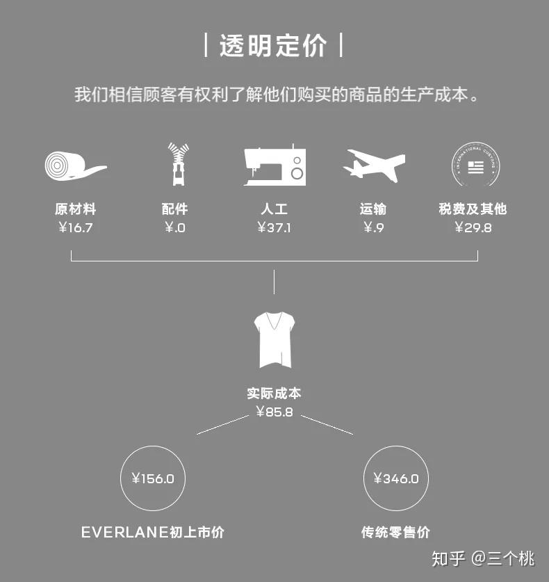 包括原材料、人工费、关税、运费等,而且还会标注生产厂家名称,所有环节完全公开透明。