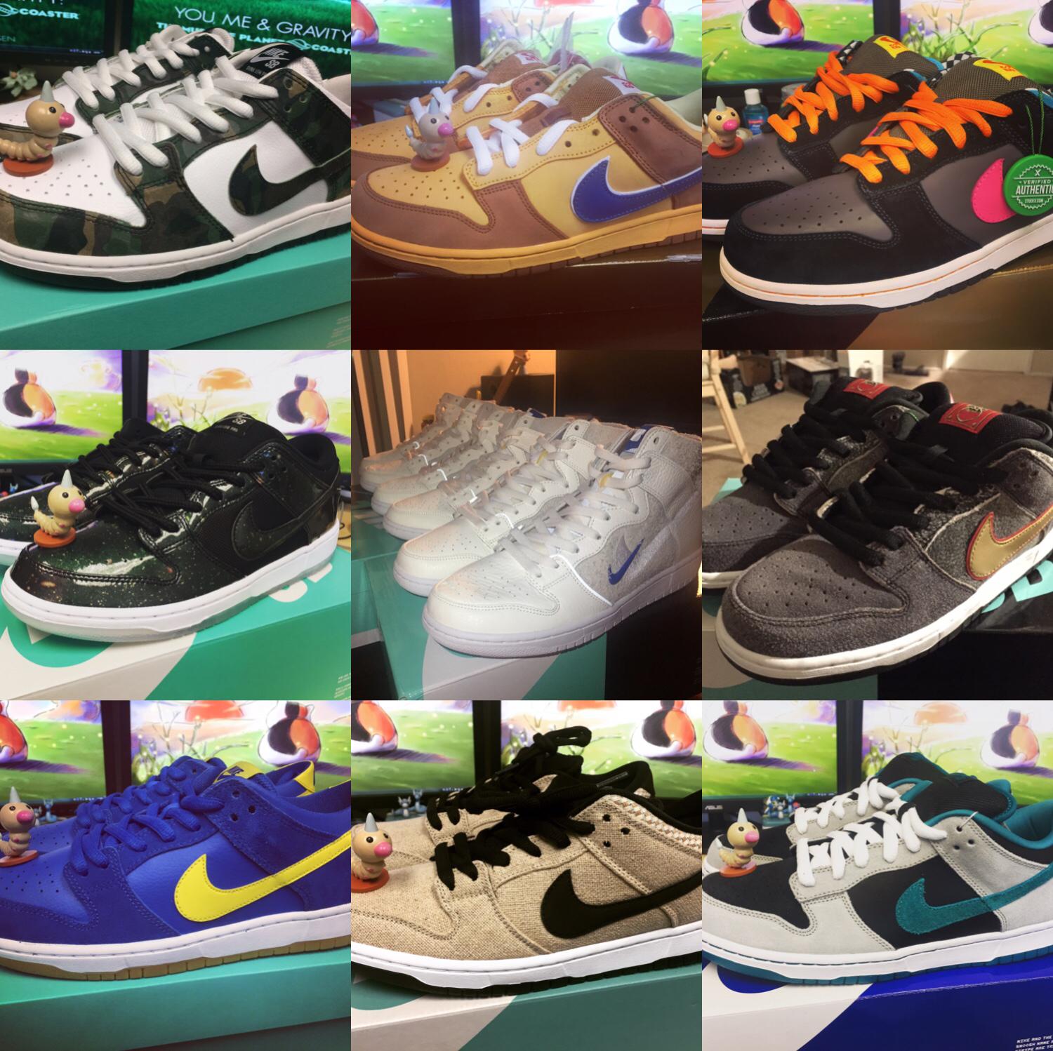 虽然Dunk SB早已没有了10年前的火热,但是作为陪伴了我高中/大学的款式,今年买了13双来纪念经典。这里面有今年新款也有10年前的老款式: