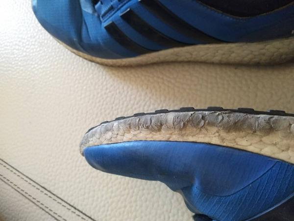 鞋面有点刮损,这个刮损刚刚有的时候我以为会越来越大。不过按照目前的情况来看,整个鞋子表示情绪稳定,事态并没有扩大的现象。整个boost爆米花回弹还没啥变化。