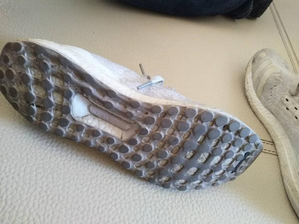 这个大概跑了500公里的样子,鞋底是马牌的,就是做轮胎的那个牌子。Adidas好像Ultra的都是马牌的鞋底了。不过这个鞋底的耐磨度看起来还没有普通的好,不知道是啥原因。