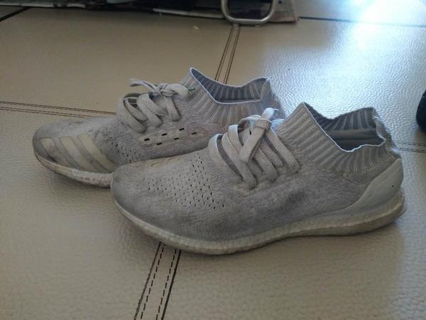 2017年阿迪出的鞋子颜值都很高,偶尔逛街遇到了就完全停不下来了。这个是袜子版本的Ultra Boost,比标准版本的Ultra Boost稍软一点,喜欢踩屎的我自然更加喜欢了,买的时候颜值很高。然而现在风里来雨里去的跑成了这个灰不灰,白不白的样子。