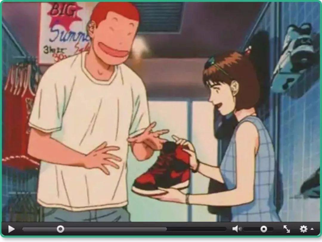 因为这双鞋,是《灌篮高手》里面,赤木晴子陪着樱木花道去买的,《灌篮高手》和迈克尔·乔丹在直男心中的位置有多高,不用我说你也知道,所以当你踩了这双鞋的时候,你根本不知道你是踩了他的偶像,还是踩了他的童年。