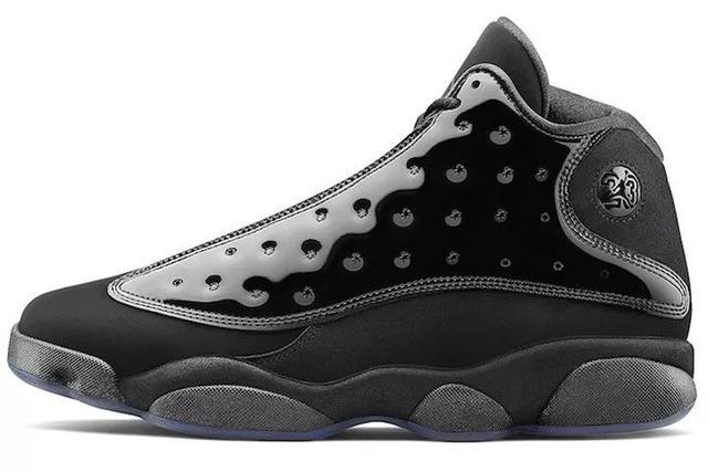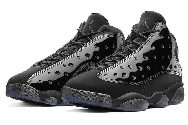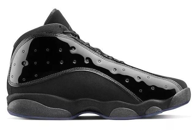 今年全新的Air Jordan 13黑猫漆皮鞋身材质采用亮皮升级呈现,鞋身采用黑色麂皮与漆皮材质,鞋帮处标志性的镭射豹眼,也一改熟悉的亮色装扮,辅以酷黑展现,彻底颠覆了我们对 Air Jordan 13 的传统印象。