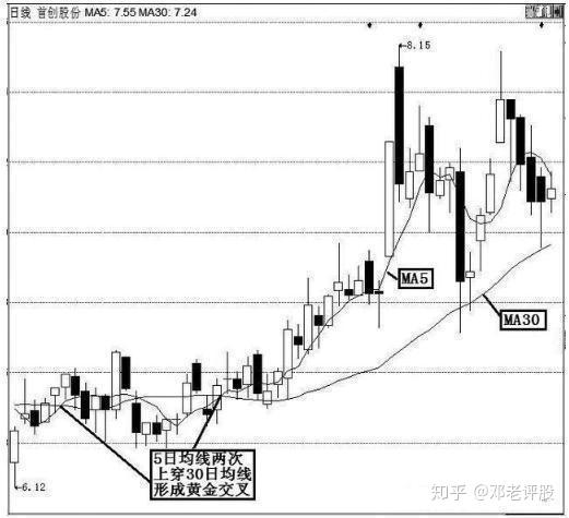 如果该股走势凶猛,买入应该果断坚决。万一错过第一买入机会,股价急升后,不要追涨,回档后再买入。低位一次金叉较难确认,因为大多数股票一般要在低位反复筑底,5日均线会出现两次三次金叉30日线的走势,其中的第一次金叉就可能是卖出信号。所以对于低位一次金叉要持谨慎态度:观察在金叉前是否走出了W底、头肩底、圆弧底等图形形态。