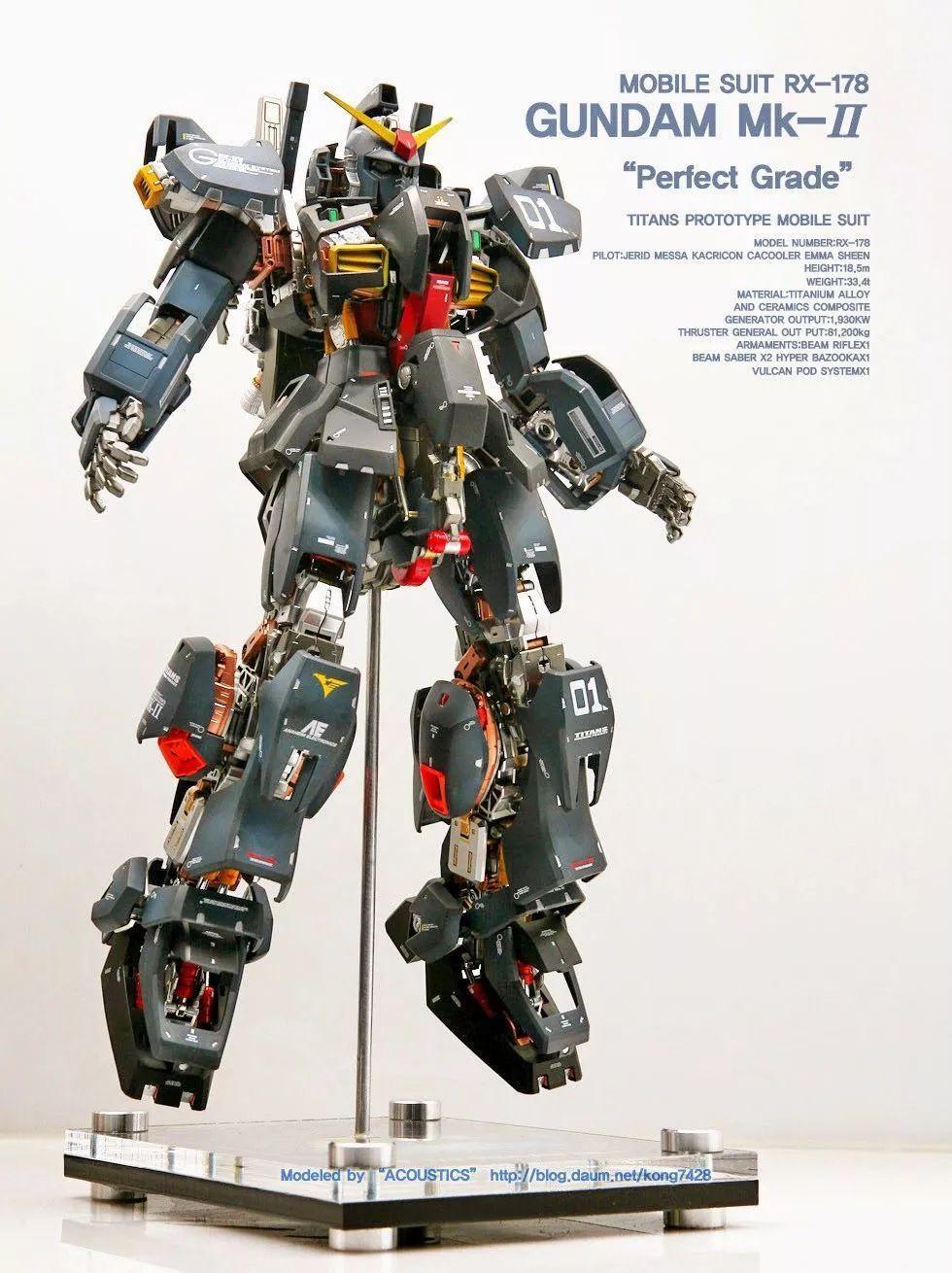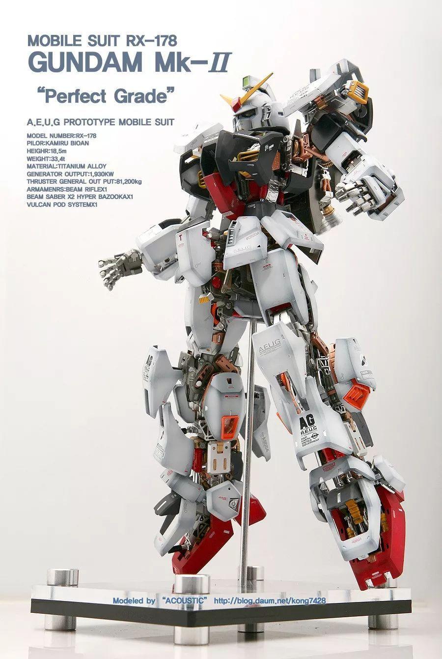 MK-II的内构一直是为人所称道的,因为其满满的细节充分显示了万代当年的诚意,可以说从黑白兔子开始,万代的PG开始走向成熟。完整的分色,大量的隐藏水口,各种液压连杆连动的关节,都让MK-II充满了机械感,成为了一代经典。MK-II的外形又特别形似RX78,因此受众群体也非常的巨大。