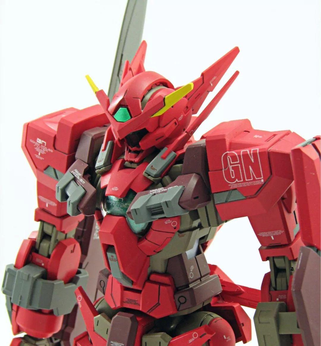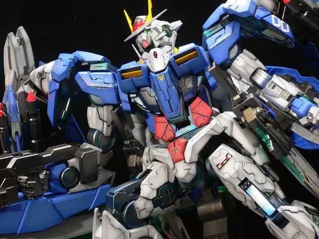 最后要说的是PG Exia。能天使是出现在高达双蛋系列的第一部中的主角机。由傻子那驾驶,战斗态度果断残酷。和另外几台机体不同,能天使强调的是机动性,所以机体设计很纤瘦,配合各种尺寸的近战剑来斩断对手。对比MG能天使的过度纤瘦,PG明显对腿部进行了加粗,并且强化了细节。
