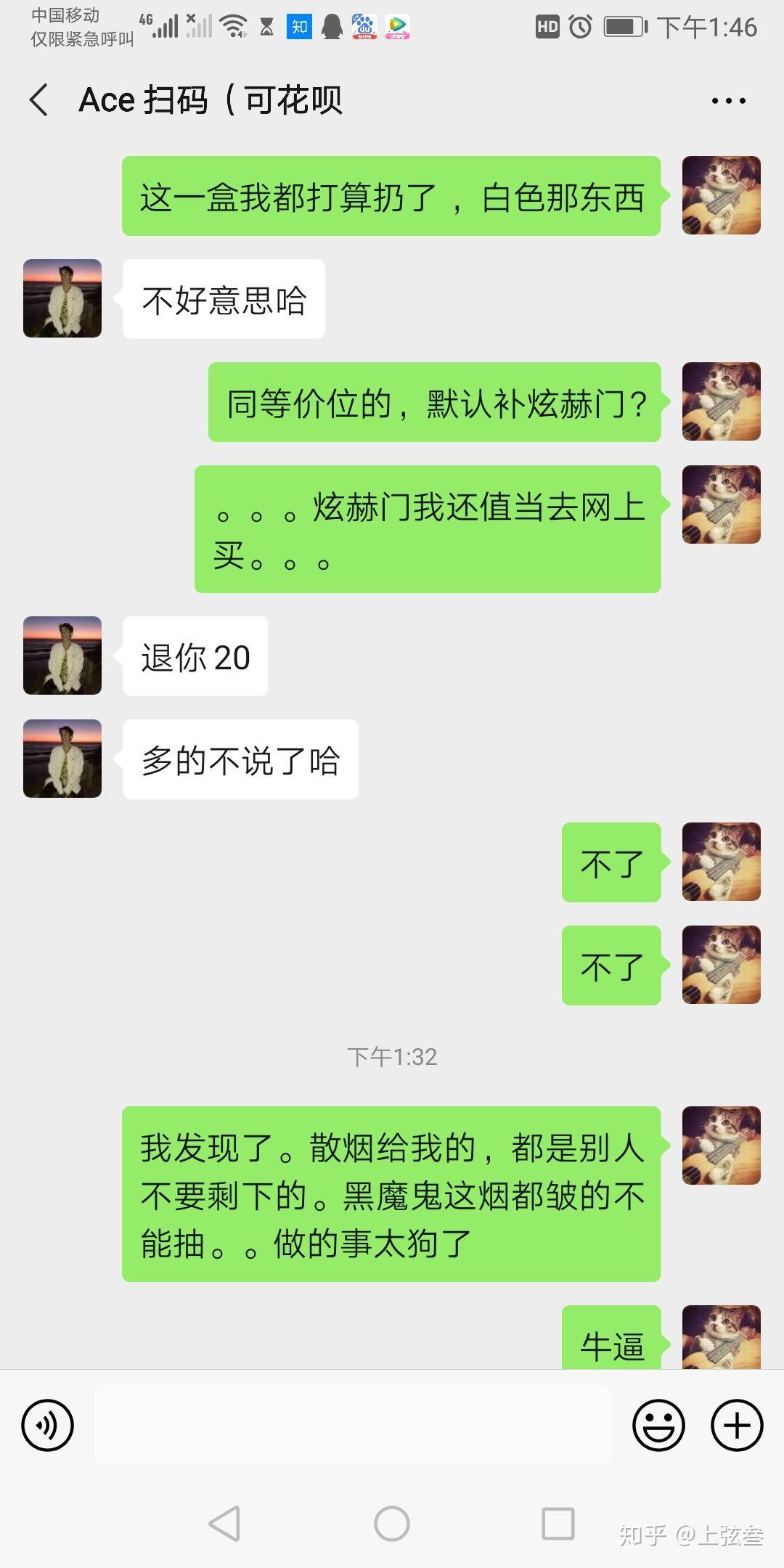 然后三款烟都没有。都是用什么白万,炫赫门补的。还有品质,都是那种没人要已经不能抽的烟。后来问他又说是货少。货少提前不说是吗。100多买的。三包烟都不能抽。后来说退二十。