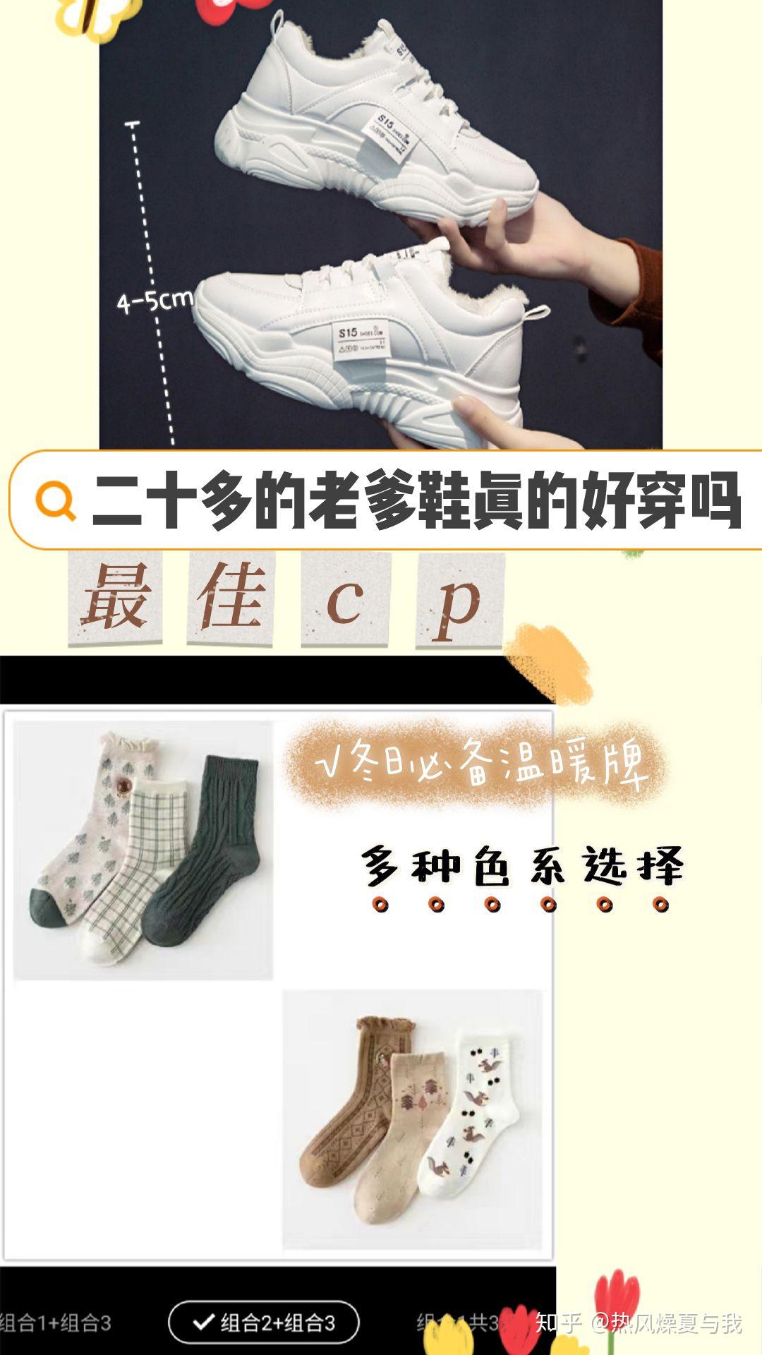 推荐理由:鞋子瞬间给你提高了3~5cm。我觉得很OK。鞋底也很厚实,唯一的小缺点就是有一点点重。其他的我觉得没有什么问题,我买过其他一百多两百多的。呃,老爹鞋都没有特别说比这个好,有可能是我踩雷吧。但是我觉得这个真的很值的,才23块6。[微笑R][微笑R][微笑R][微笑R]我觉得喜欢的姐妹可以入手,然后就是搭配他的袜子。一般这种老爹鞋的话都是配一些比较纯色一点点的袜子。但是冬天的话穿在里面你也可以选纯色的嘛我就可以选择这个。