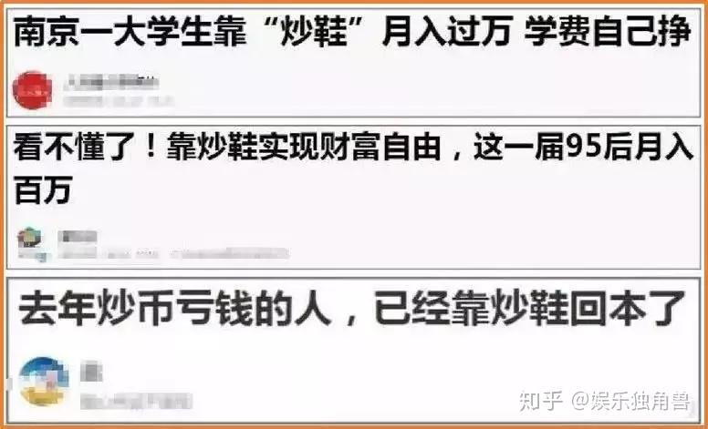 “10年前你错过炒房,5年前你错过炒比特币,现在难道你还要错过炒鞋吗?”“70后炒股,80后炒房,90后炒币,00后炒鞋。”上述类似煽动力十足的炒鞋口号,让人热血沸腾。