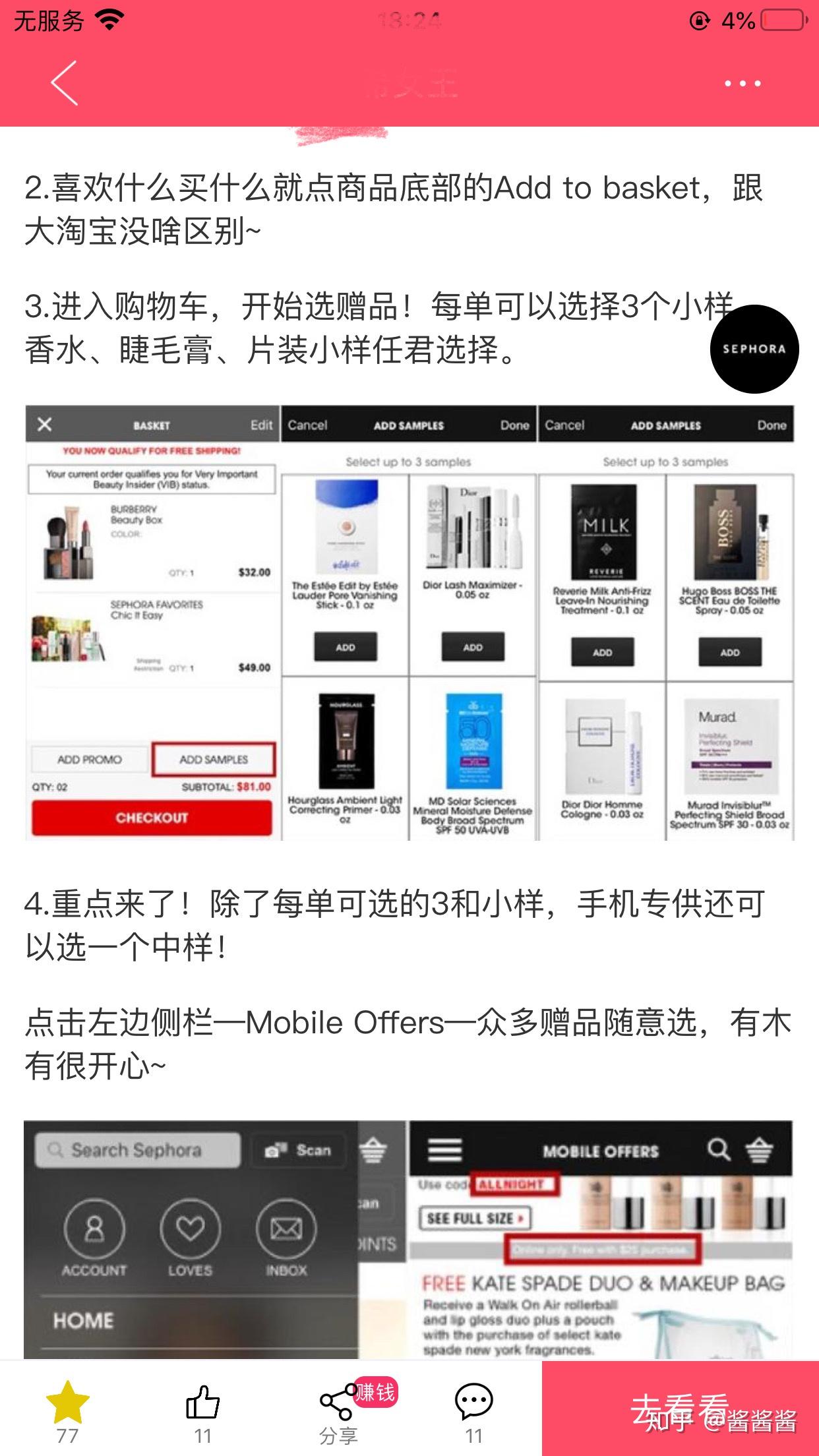 3.进入购物车,开始选赠品!每单可以选择3个小样,香水、睫毛膏、片装小样任君选择。