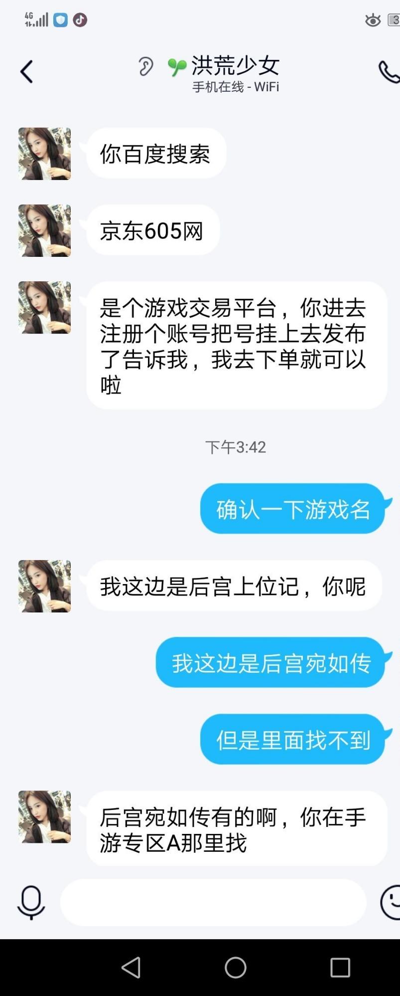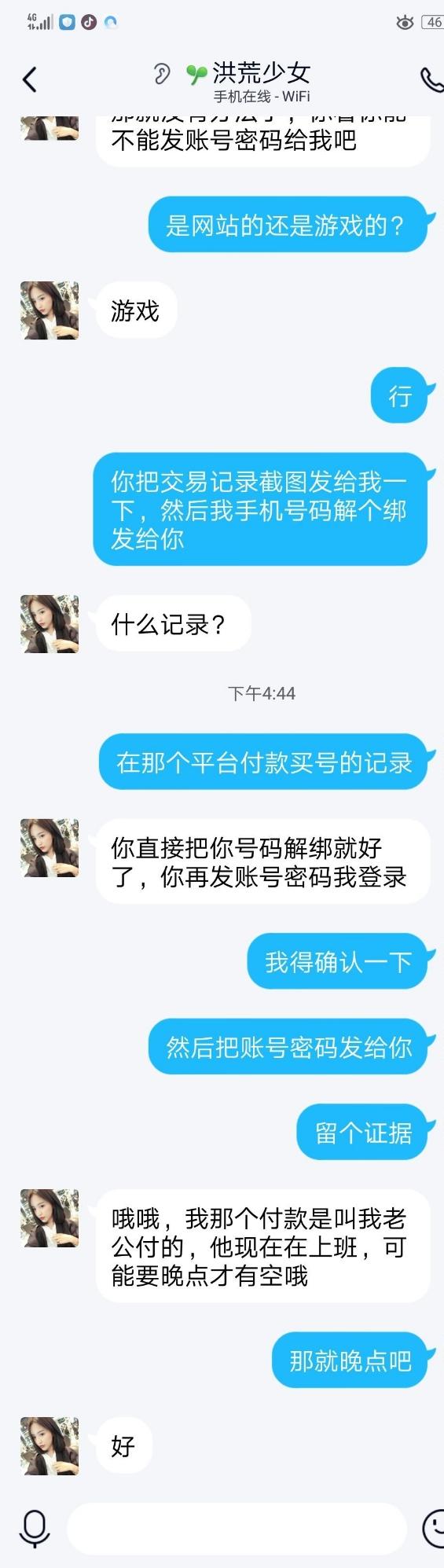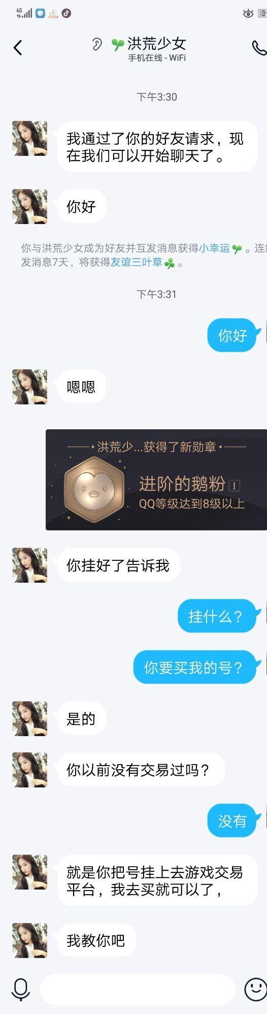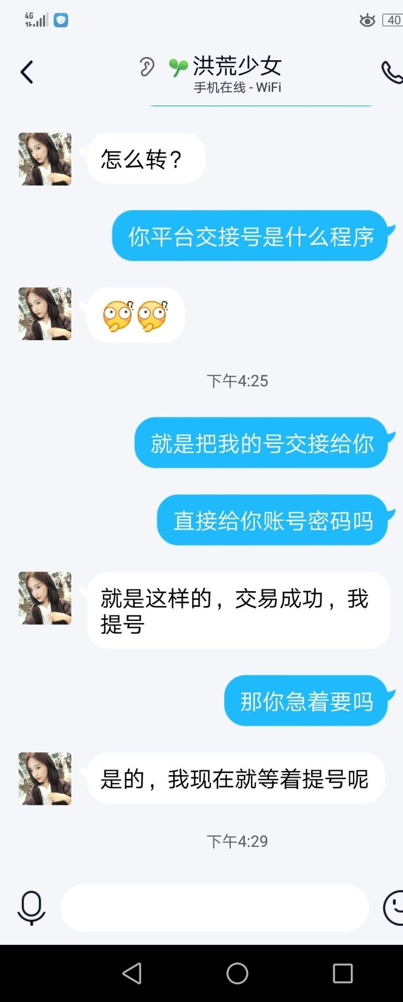 但是!没想到吧我还留了个心眼!不看到交易记录我是不可能把号给她的,万万没想到,她是这样回答我的,此时一个小学生的形象居然变成不谙世事的少妇