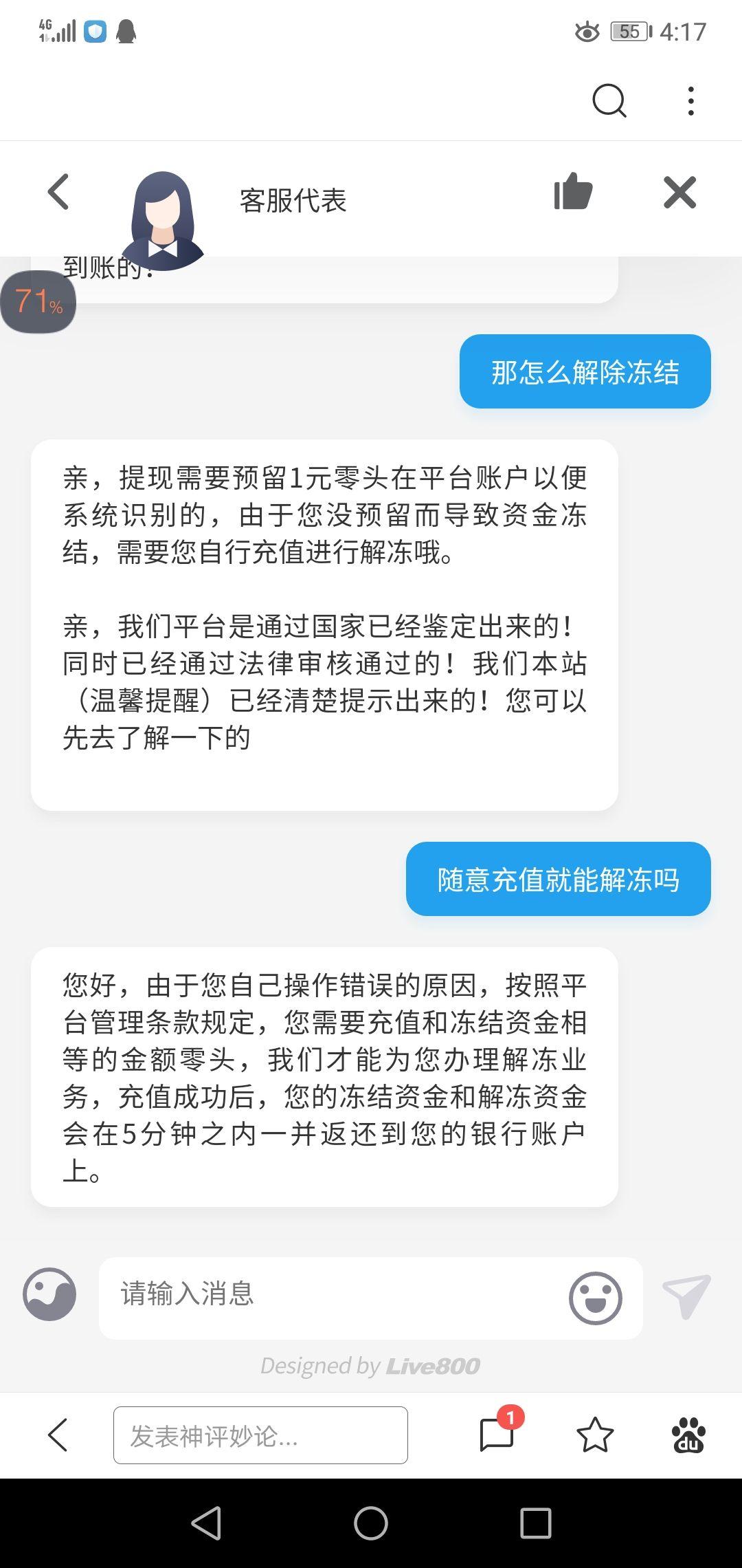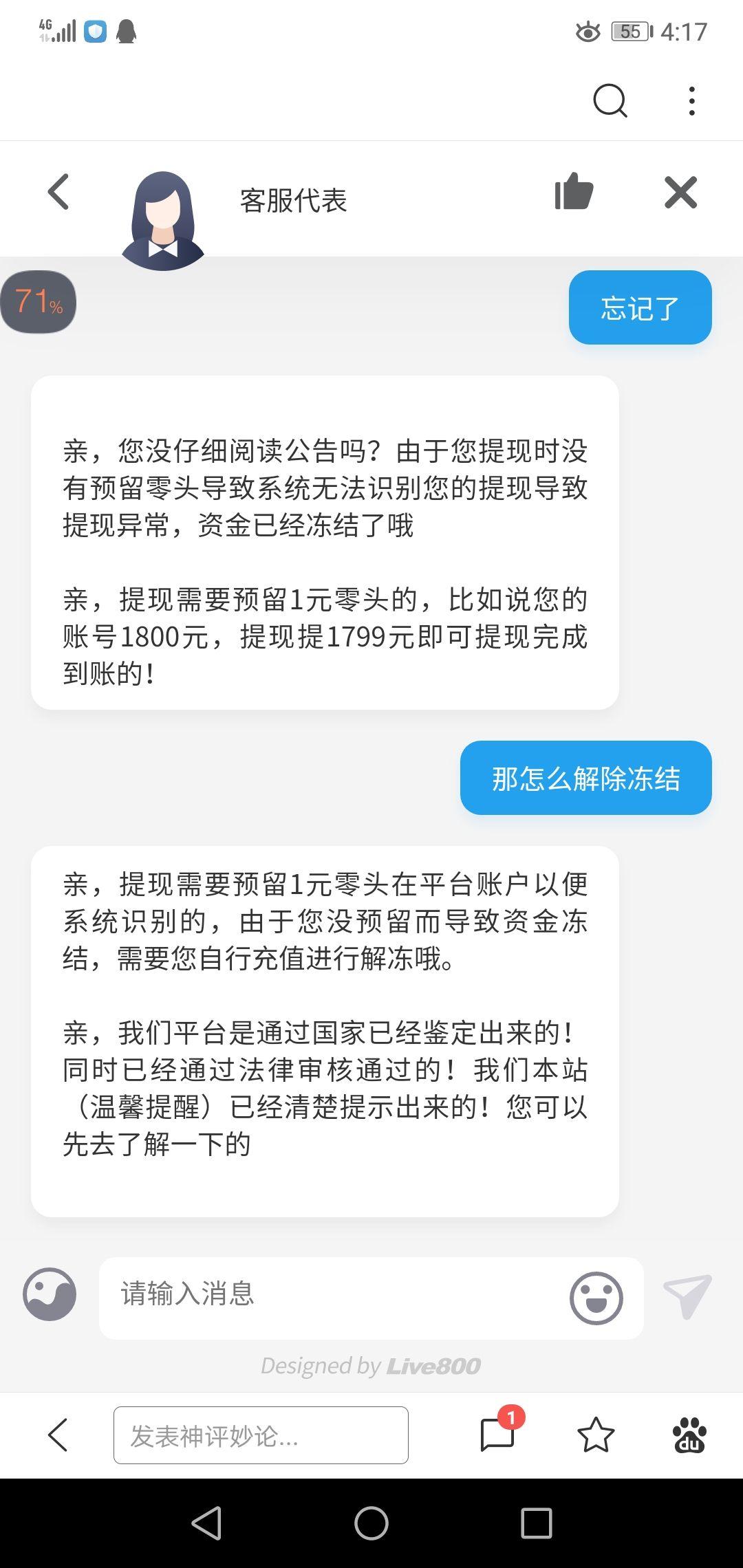 这下死了,800块冻结了,还得充值800才能解冻提现