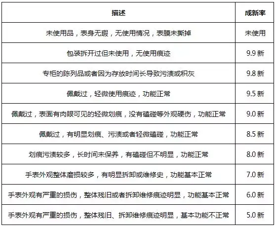 二手表的成色是指二手表在再次交易流通时,手表本身及其配件的状态。成色越新,说明手表使用少、配件完善,相对应的就是流通的价格也会更高,这也就是为什么有保卡和没有保卡的回收价格会有所偏差。