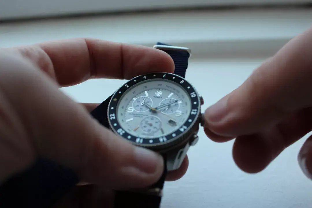 计时码表可以开启计时功能测试一下计时效果,指针准确指向12点钟刻度。日历是否能在晚上顺利跳转,如果是在中午开始跳转,不用担心,手表 “日夜颠倒了”,时针转一圈即可。