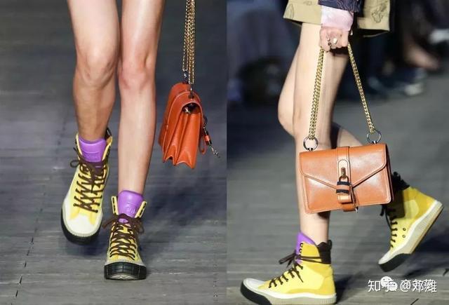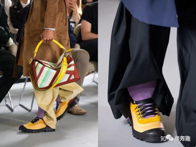 凭借包袋逐渐走入大众视线的Chloe,在2020系列中也有出现运动鞋。秀场有看到这款黄黑紫配色,格外亮眼骚气。
