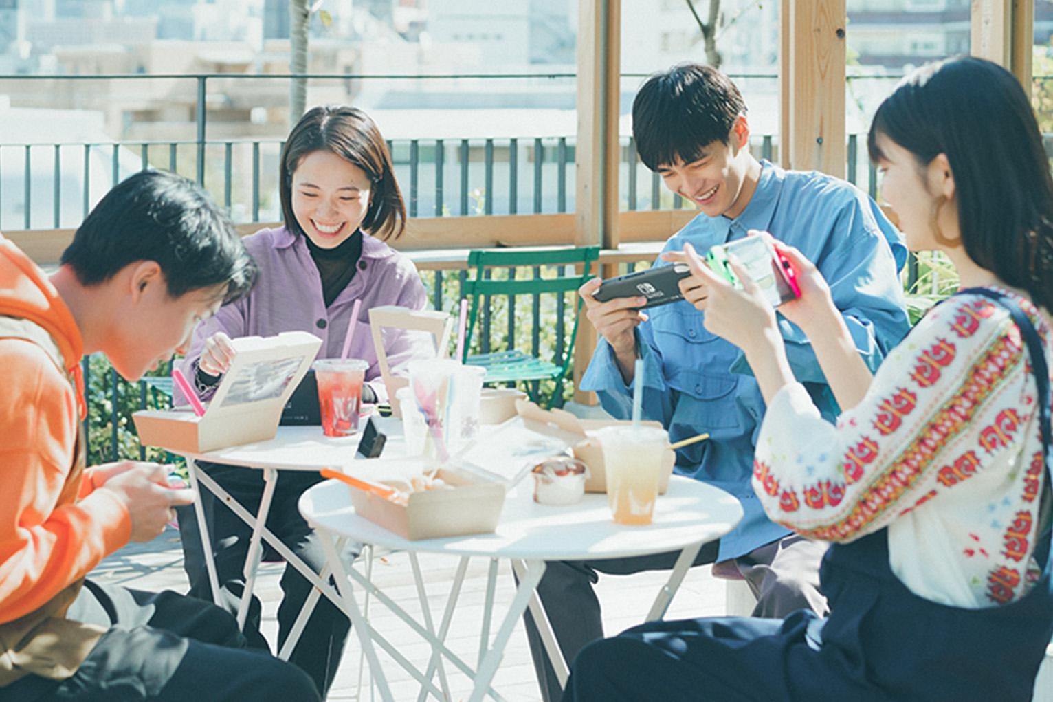 除非你周围确实有游戏爱好者的同事、同学,否则想把Switch当聚会神器我看还是有点难度(不是绝对不可能),像下图中的情景只存在广告之中(且不说有没人跟你玩,右边那姑娘背对着阳光还看得见屏幕就有鬼了)。