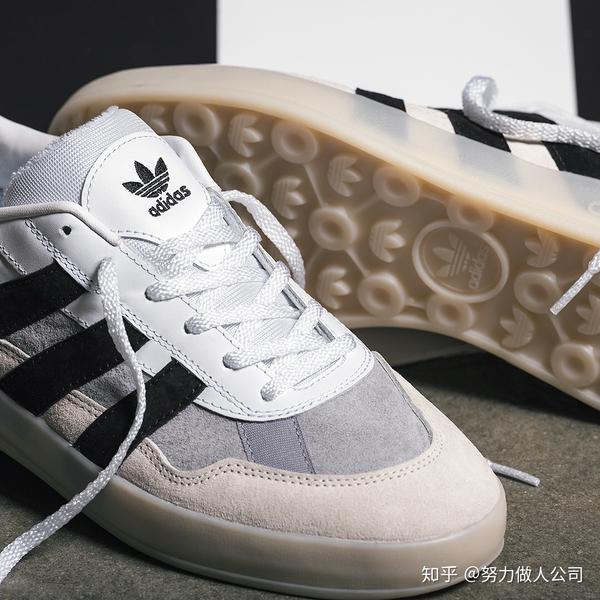 鞋侧的圆孔元素被移植到鞋底了,同时鞋侧一样是凸起的adidas logo(看到没复古鞋的套路),同时这个鞋一样是胶鞋底,半透明的鞋底包着三道杠,三道杠的尾端若隐若现(和converse那双同一个点)没办法,我就是吃这套。