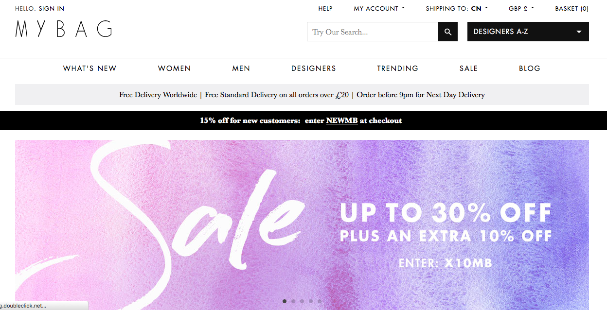 这个网站就比较高级一些啦,有中文版,衣服包包鞋子配饰。最初颇特女士是做市场杂志的,所以时尚品味可以信任,有兴趣的可以订阅他们的The Edit电子杂志。在香港有仓库,所以运费对香港比较友好,50港币的运费,2个工作日标志性的黑色购物袋送到。送大陆需要10镑运费,但是我没有在国内用过这个网站,我看配送地选中国,标价就是用美元的了?