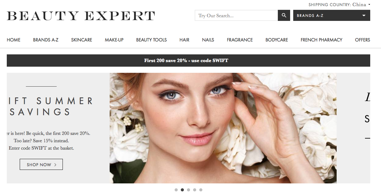 国际运费4.95英镑,有很多大牌。说起来还有一个“陈凯西和Escentual不得不说的故事”:有一次很兴奋的看到Escentual法国药妆六折还不知七折的deal,高高兴兴的上去定了一包我会用到的理肤泉产品,K乳,DUO,AI, B5等等,结果左等右等没来,我也懒得去找客服,心想以后再也不能用这个网站了,太不靠谱了,这次就算交学费,花钱买教训了。