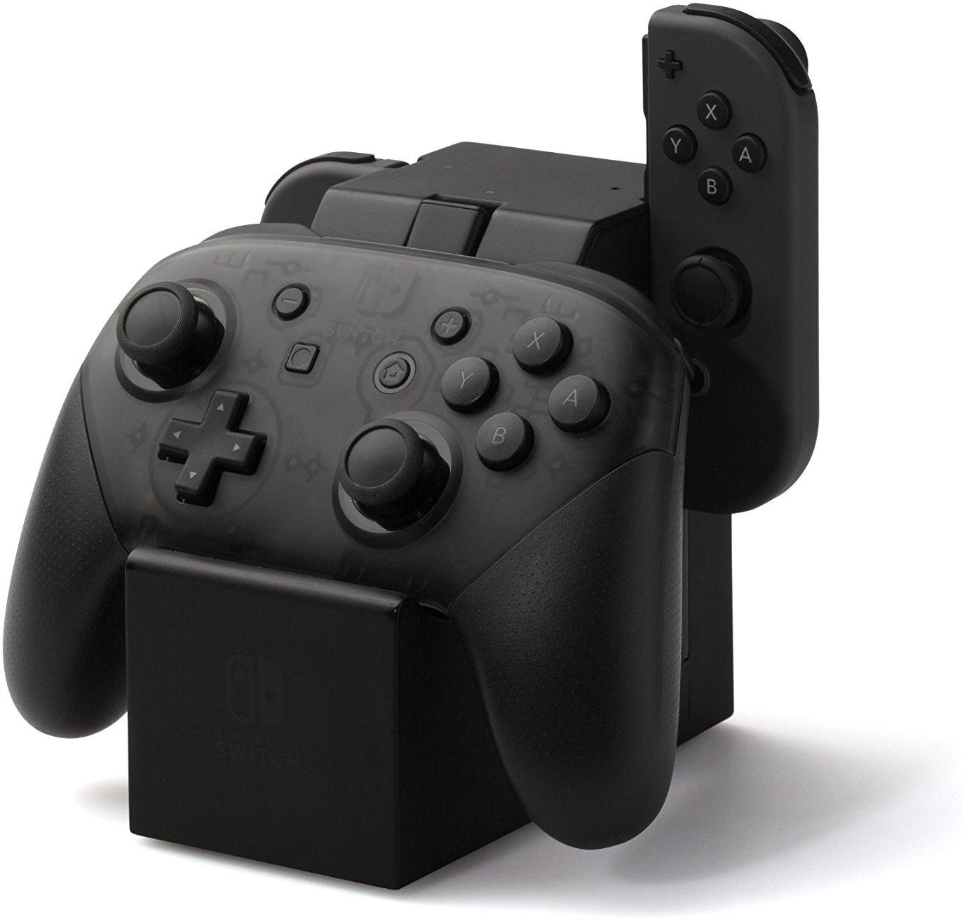 目前市面上大多都是 Joy-Con 手柄充电座,最近我购入了一款充电座,可以同时充一对 Joy-Con 手柄和一个 Switch Pro 手柄,如果这些手柄你都有购入的话,这个充电座会是一个不错的选择。