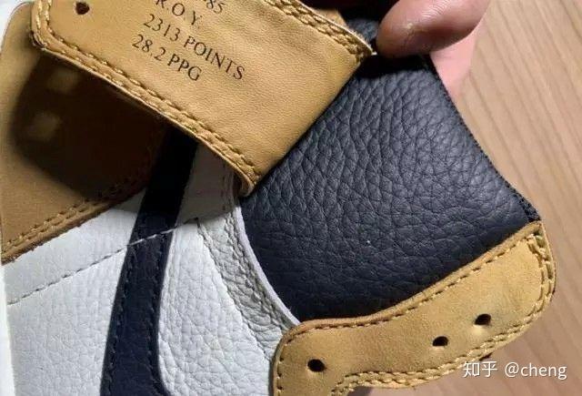 然后我们看看材质,荔枝纹头层牛皮,或者是纳帕头层牛皮,或者是其他的皮,每双AJ1皮质都不同,这个算是一个特色,然后我们就会发现为耐克提供皮质的公司并不是独家,只要你有钱就能买到。这里埋了一个伏笔,(如果不是原厂的皮,鞋子的配色几乎是调不出来的)