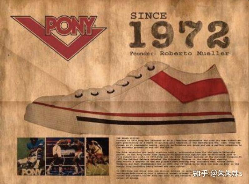 PONY,这个出生于1972年,象征胜利的V是识别符号,是英文Victory的缩写。以19世纪邮差骑着小马来送信的精神而命名(pony在英文中是马驹的意思),源自于美国的老牌球鞋,跟主打时尚潮流不同,当年的PONY是专业运动鞋的头号象征。经过时空转换,PONY由纯粹的运动鞋,发展成全系列商品齐备的休闲运动品牌,无论在物料,款式上于既有元素中,更融入张扬及叛逆的品牌个性。
