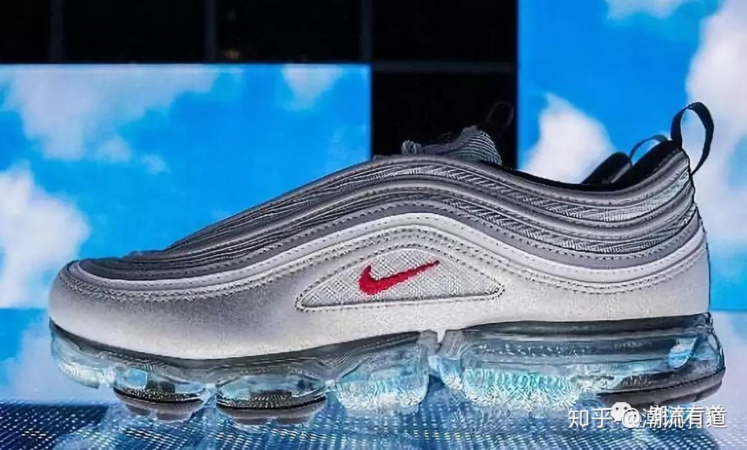 因为流线型的鞋身设计,所以97又被称为子弹鞋,OG的鞋子最最经典的应该算是金银子弹了,但是鞋身比较重是这个系列的通病,今年也复刻了不少,同时也除了不少改良版本,鞋面的材质不是原有的皮革材质而是类似于软塑料一样的材质,重量减轻了不少。但是我个人觉得一下子没有了OG的味道。差了很多。
