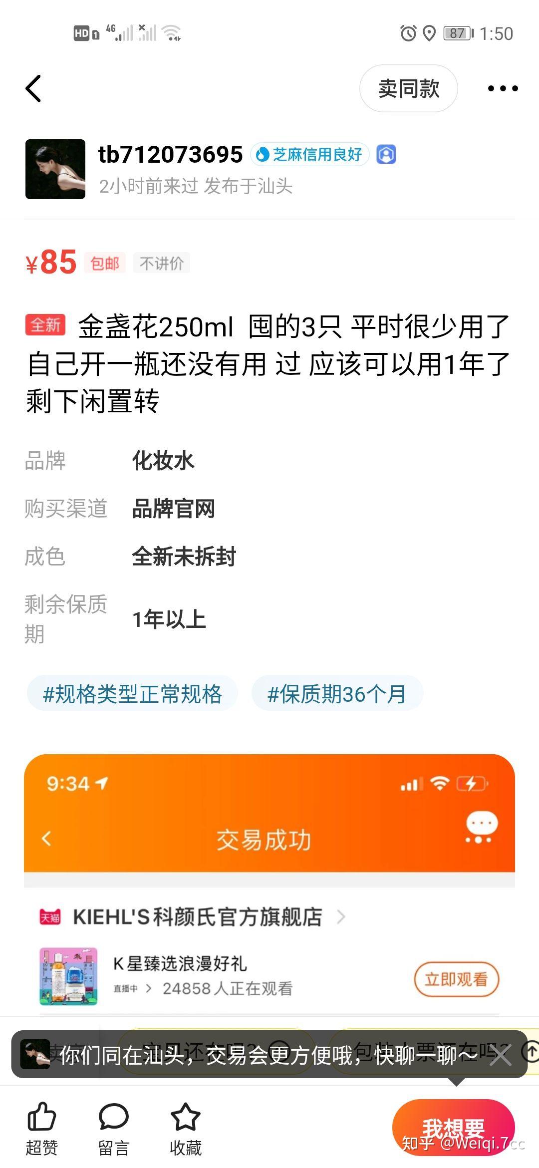 这两天在逛耳机,咸鱼也推了一些护肤品,都说是闲置,结果下单了发现不对劲,那个号就两款闲置,我拍了也没下架,还一直在卖!!!并且一直有成交!!!