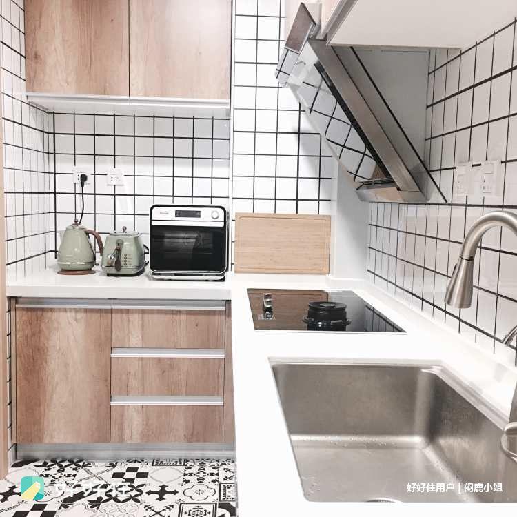 台下盆台面的水能随手就抹到水槽里去,超方便。觉得有会发霉的胶,可以尝试规划时,水槽台面用同一材质无缝衔接。比如石英石台面和石英石水槽。
