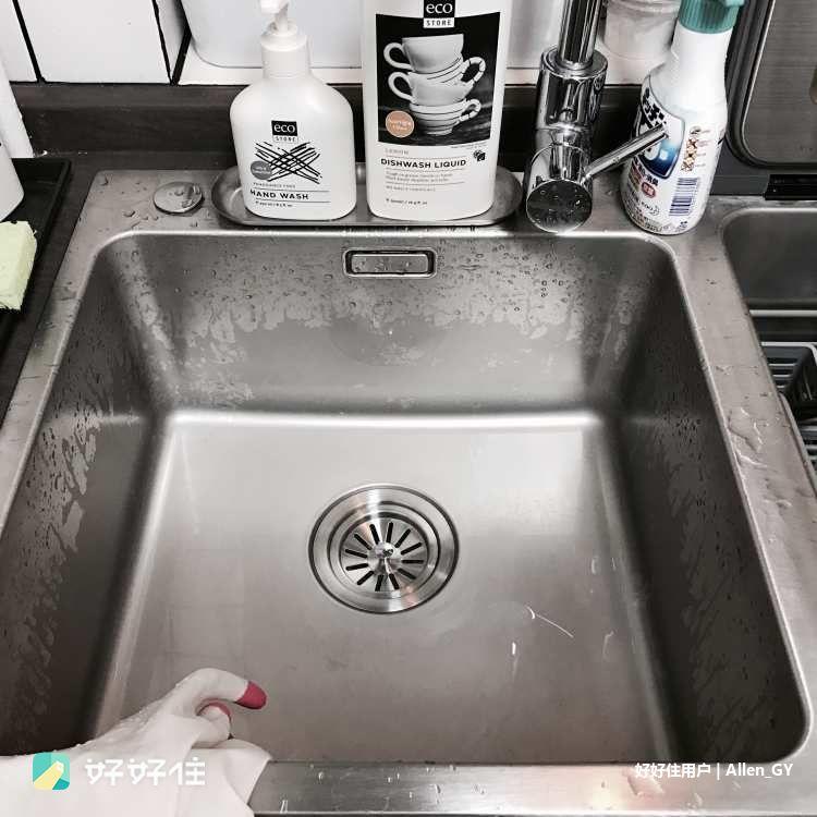 不锈钢材质的水槽很重要一点就是要拉丝的哑光面,既耐脏又耐磨。试想下亮面的不锈钢用过几次之后的水渍、手印、洗碗刷锅留下的划痕,简直惨不忍睹。龙头我也用的拉丝哑光,少了好多烦恼。