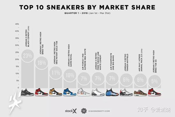 Air Jordan长期都是球鞋爱好者收藏的重点,2018年第一季度市场份额最大的球鞋也均出自Jordan,好像除了Air Jordan也没有太值得推荐的篮球鞋了,但是篮球鞋卖得是真的很好。