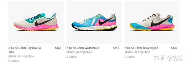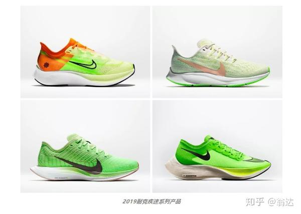 再有就是同样配色在同期同一类型的跑鞋中集中使用,比如今年路跑鞋的绿色(当然这个颜色已经被太多品牌用过,但能有实力像Nike这样轰炸跑道的基本没有),越野鞋的粉红+浅蓝+乳白+黄……之所以这样配色,未必是最好,更可能是因为“竞品没有这样做”。