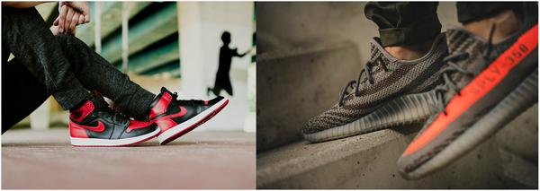 (图片说明:左图Jordan 1 Retro Bred 2016,右图Yeezy Boost 350 V2 Beluga)