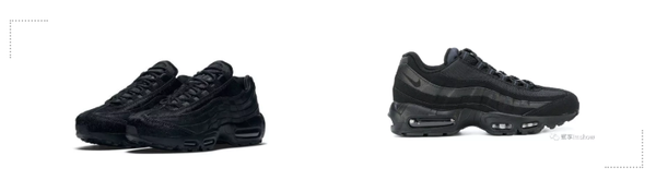 这款配色在市场的存量很少,不过Air Max 95 有很多类似的全黑配色,基本售价在 700-1000 左右,价格也颇为实惠。