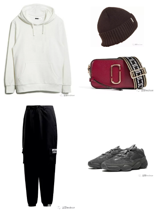如何搭?小蜜推荐搭配:针织帽+卫衣+束脚运动裤+相机包+Yeezy 500鞋