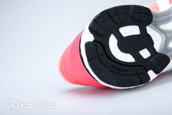 后掌位置的大底使用的是AdiWear耐磨橡胶,采用U字马蹄形结构设计,在一定程度上能够增加后跟落地时的推动力。