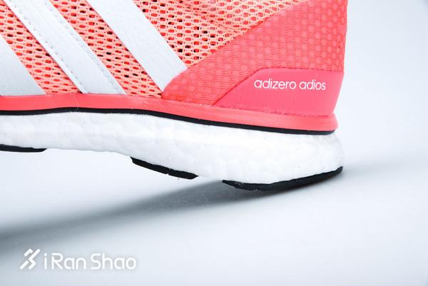 由TPU颗粒发泡而成的Boost材料依旧是adizero adios Boost 3上最为重要的中底组成部分,从前到后几乎覆盖了全掌中底。