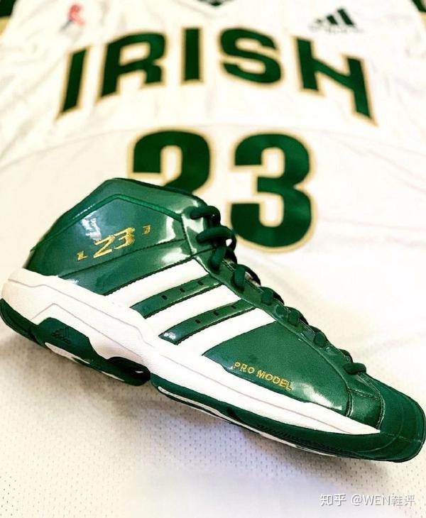 这就要追溯到他高中时期了,在圣文森特圣玛丽高中的时候,阿迪是圣文森特的赞助,所以队员的装备都是清一色的三道杠。那个时候詹姆斯最喜欢的穿的鞋有两款:Pro Model,以及TMAC1。