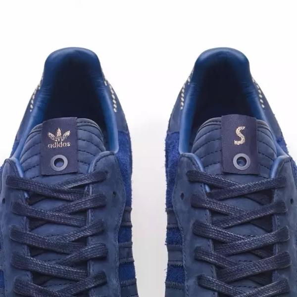 adidas Originals此次携手巴黎潮流店Starcow联名推出以复古足球鞋 Samba 为基础鞋款的全新款式。这次Samba可谓是蓝色安好者的终极杀器。以三种不同深浅的蓝色容貌麂皮以及内里搭配高级的“法国蓝”组合而成。细节之处在于鞋身黑色的Starcow 与 adidas 双方logo,而鞋舌上就更让人眼前一亮。一边是adidas的三叶草logo,另一边是以S为单字母代表Starcow的玫瑰金刺绣在上面,而鞋后跟更是以三条金色线条作为点缀,再加上复古生胶鞋底,尽显整双鞋的高大上豪华气质。