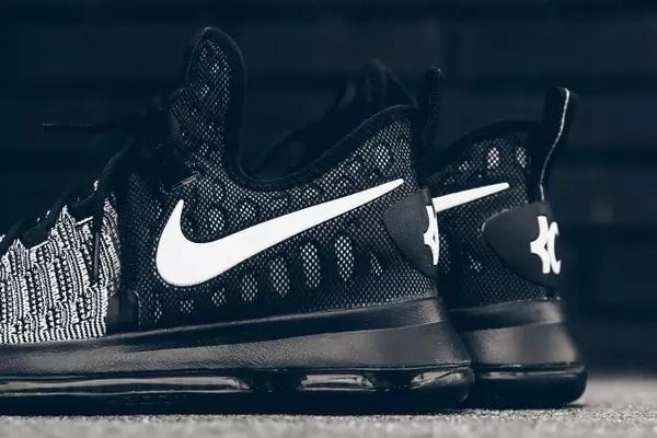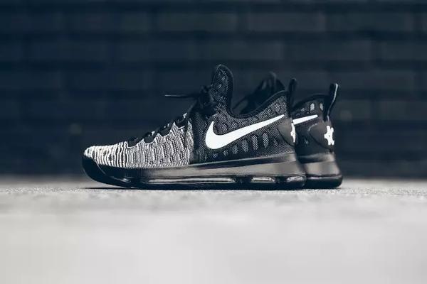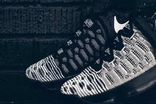 对于KD而言其关于NBA报道,无非就是转会去勇士的各式新闻。不仅在NBA上成为焦点人物,而Nike借此推出的全新 KD 战靴 Nike Zoom KD 9也攒足了观众的眼光。"Mic Drop"含义---强调某一令人称奇的观点而表达的惊叹。就好比此次杜兰特的转会就让人足够惊叹了,再配合这双全新KD 9更让话题热议。全鞋依然以全掌 Zoom Air 可视气垫以及 Flyknit 针织技术作为独特的鞋底配置。全鞋以黑白犹如“奥利奥”配色般,前半部分以白色线条间隔而成,而后半部分以全黑构造,搭配上Swoosh以及KD全白logo,亮眼标注着这双KD 9的独特性。