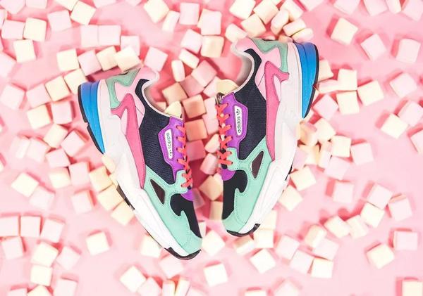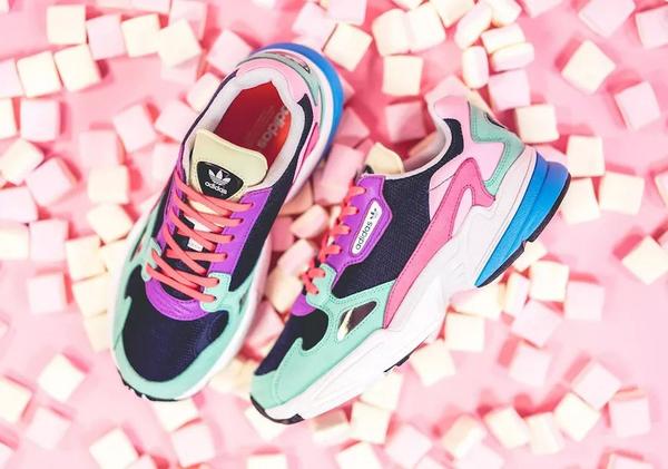 近番,adidas为adidas Falcon鞋款打造了一款全新配色。鞋款以淡色系的紫、绿、粉、蓝、黄和黑色的撞色设计示人,不仅看上去层次感十足,还让整双鞋看上去少女心爆棚。麂皮和网布材质打造的鞋身,有着优秀的质感。据悉,该鞋款将于4月11日发售,售价100美元。