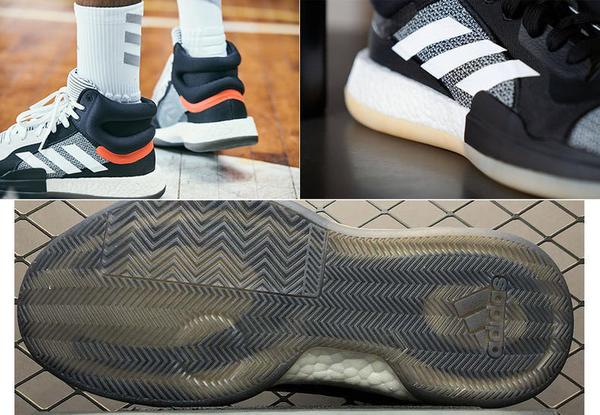 Marquee boost是一双比较低调的实战鞋。作为团队球鞋中的一员,采用了全掌boost的中底材料,前低后高的分布设计,启动能跟得上,后跟反馈也很好;很多球友认为它拥有一个知名缺点,后跟不跟脚,可以通过系紧最顶部的鞋带孔来缓解。