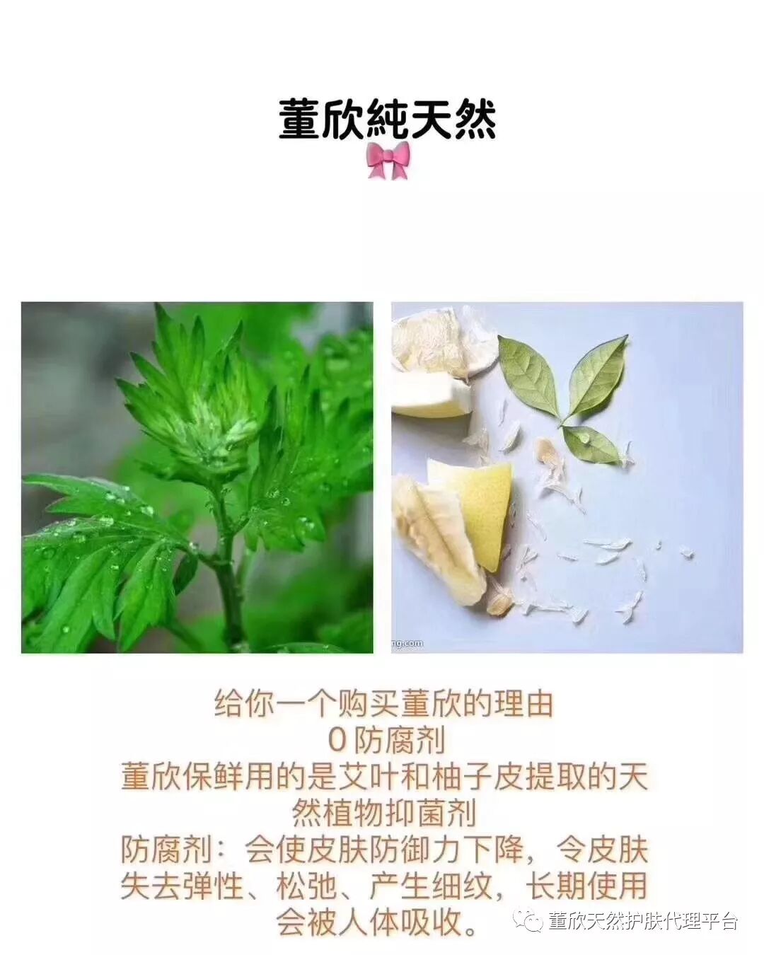 董欣是我们身边的花花草草做成的护肤品,0防腐剂,0添加剂,0香精,0酒精,0铜,0汞,0铅……